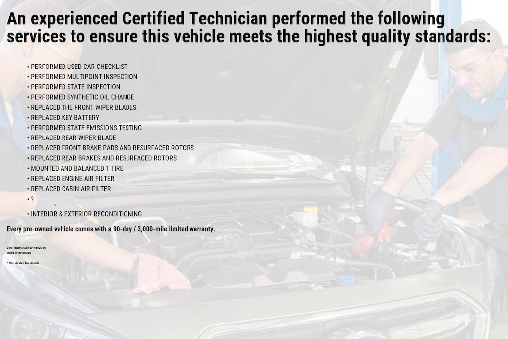 Flywheel to freeze plug, thermostat to turbocharger, cylinder block to constant velocity joints, our 7-Year/100,000-Mile CPO Limited Powertrain Warranty has you covered.