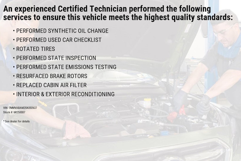 Each vehicle is required to endure an uncompromising 160-point inspection inside and out, performed by a factory-trained Mazda technician. Below are just a few inspection highlights: