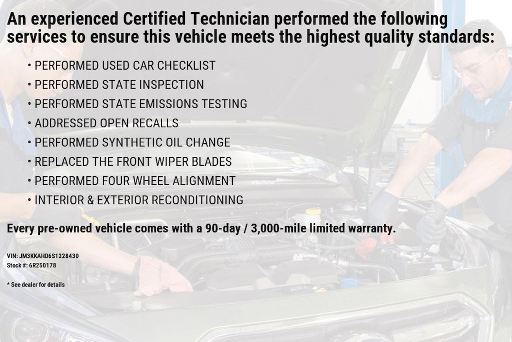 Each vehicle is required to endure an uncompromising 160-point inspection inside and out, performed by a factory-trained Mazda technician. Below are just a few inspection highlights: