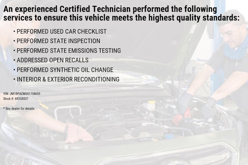 Each vehicle is required to endure an uncompromising 160-point inspection inside and out, performed by a factory-trained Mazda technician. Below are just a few inspection highlights: